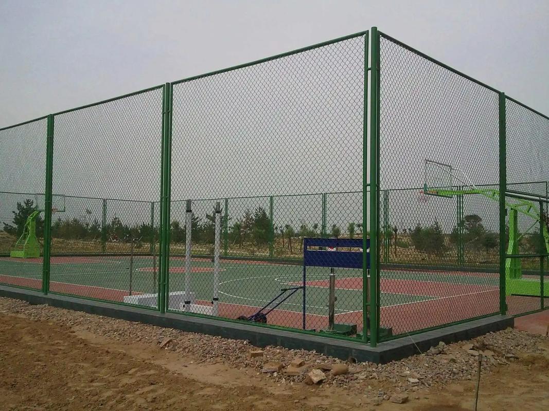 篮球场围栏网是专为篮球场设计的新型防护产品,此品网体高、防攀爬能力强。它又被称为:"体育场围网",可以在现场施工安装围柱,围网,产品较大特点是灵活性强,可根据要求随时调整网片的结构,造型和尺寸。体育场围网特别适用于高度4米以内的作为球场围网、篮球场围网、排球场地和体育训练场地使用。浸塑产品是以钢铁为基体,耐候性高分子树脂为外层(厚0.5-1.0MM),具有防腐防锈、耐酸碱、防潮、绝缘、耐老化、手感好、环保、寿命长等特点,是传统油漆、镀锌等涂膜的更新换代产品,其表面为浸塑,包塑处理/ 材质: